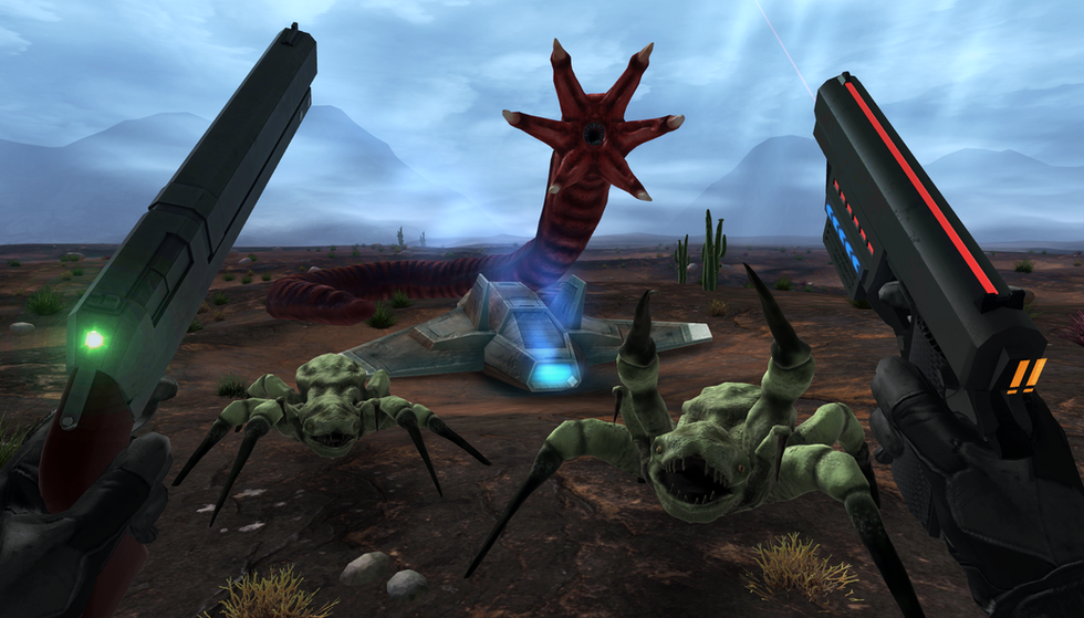 CRASHLAND is a VR action horror game set on a hostile alien planet. You play as an intergalactic gladiator who is crashlanding on the planet to try and survive until rescue. Combat in CRASHLAND is fast, vicious, and brutal. You will fight giant hellworms in the desert, terror birds in the forest, scorpions in the mist and spiders in the dark. There is nowhere to hide.